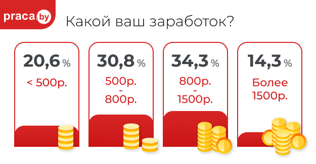 Исходя из анализа результатов опроса, мы сделали вывод, что для пользователей портала Praca.by важен, безусловно, уровень получаемой заработной платы, но любить свою работу – не менее важно, а возможно, и еще важнее.