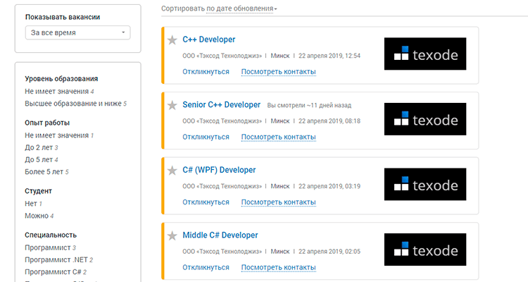 - Обновляются 1 раз в 30 часов в ручном режиме и 1 раз в 20 часов с помощью функции «Автообновление даты вакансии»