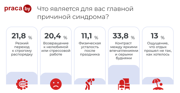 Логично, что чем ярче и насыщеннее был отдых (чем выше пик дофамина), тем глубже «провал» при возвращении. Мозг сравнивает серые будни с недавней эйфорией, и реальность проигрывает недавним ярким впечатлениям. 33,8 % участников опроса именно за этот вариант. Всего лишь 11,1 % испытывают физическую усталость после праздников.