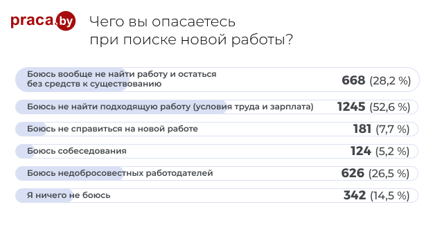 В период с 24 по 31 марта 2022 года Praca.by проводила исследование с целью узнать, есть ли в это непростое время тревоги и переживания у людей, связанные с работой. Методом исследования был выбран опрос, участие в котором приняли 2366 человек.