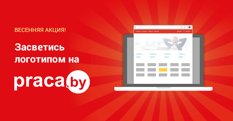 Весь март для вас будет действовать акция «Засветись логотипом на Praca.by»: подключите любой тарифный план или доступ к базе резюме на срок от 2-х месяцев и получите возможность разместить логотип вашей компании на главной странице портала Praca.by в подарок.